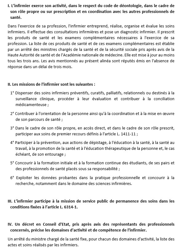 Textes relatif à la profession d’infirmier :